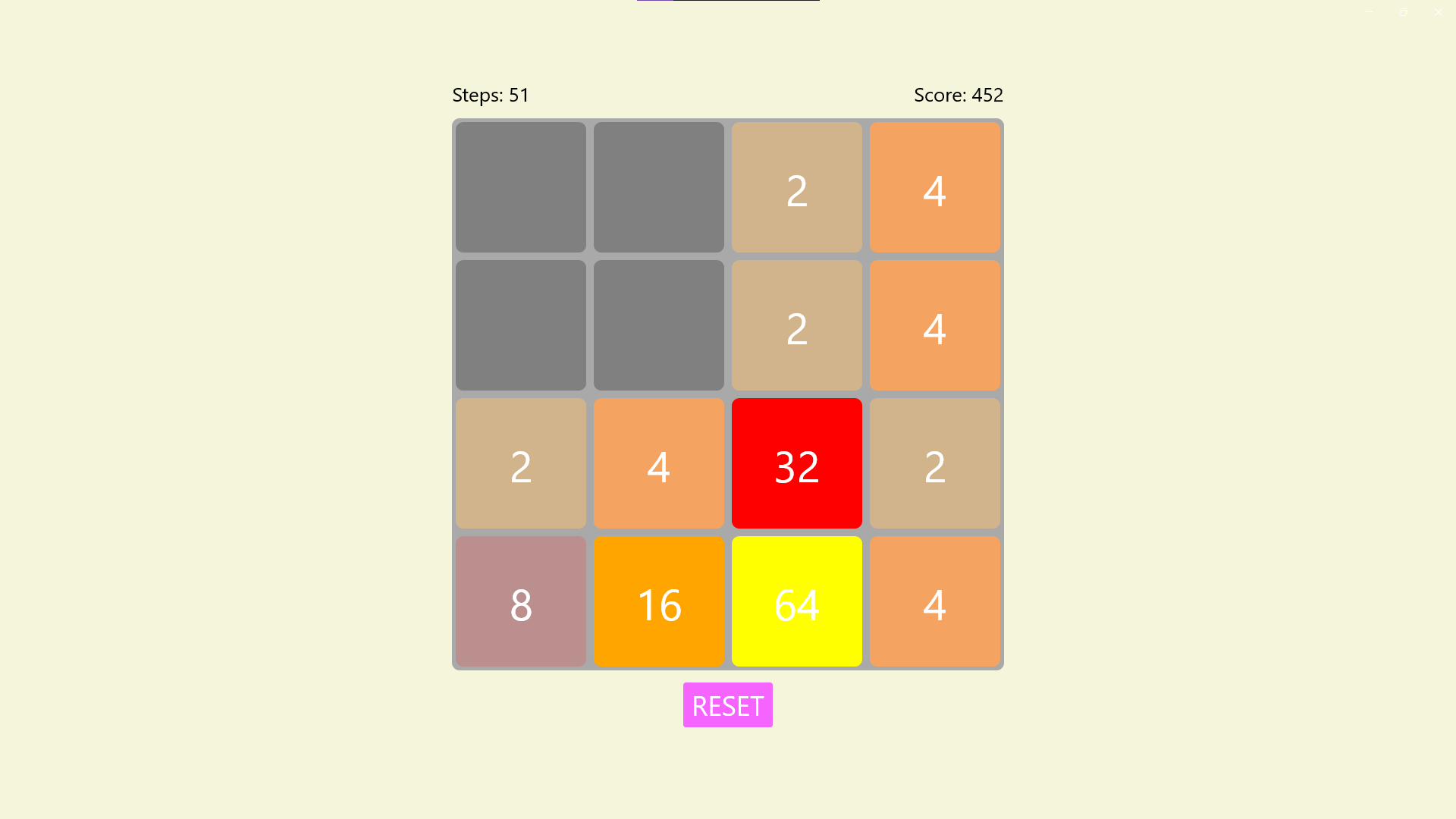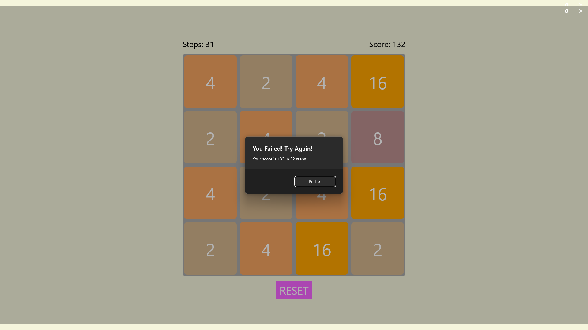 Ported to WinUI3 from my WPF app, it's a plain 2048 game, with no animations. It is published to the Microsoft Store, the source code is also publicly available in my repository.