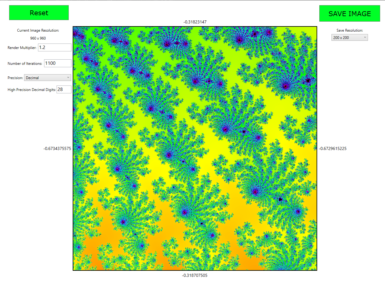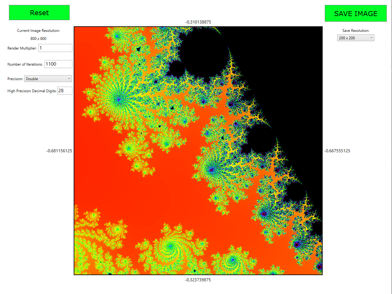 Mandelbrot fractal visualizer app with an unlimited precision datatype ( has to be manually adjusted due to compute time ). A simple application that zooms in on a square that can be resized using mouse wheel. Zoom is technically unlimited but it takes a lot of time for high precision. The app also allows its user to save the current rendered image.