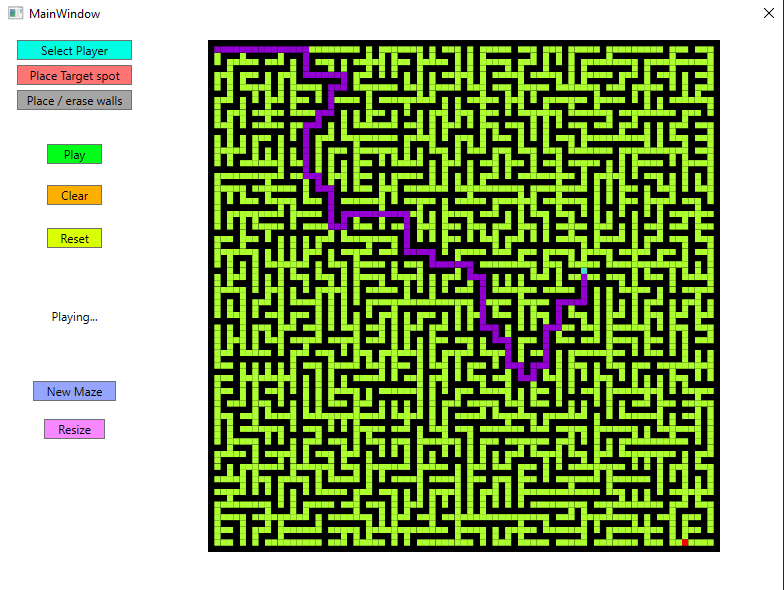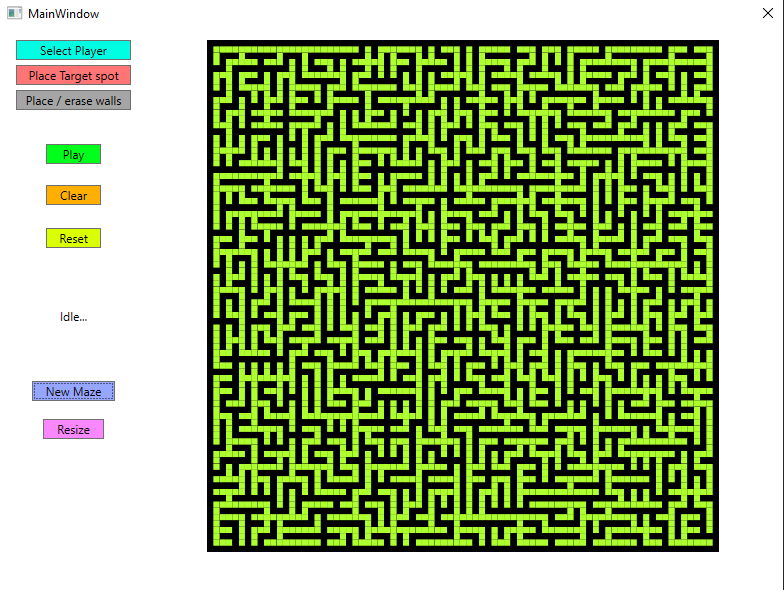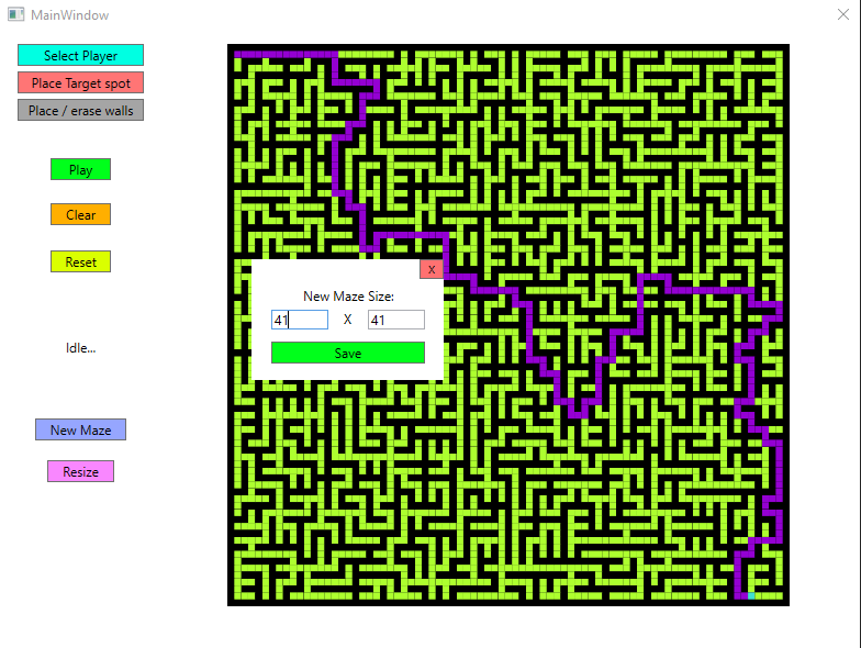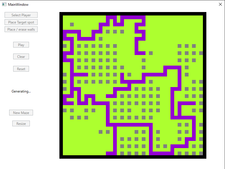 Maze generator and pathfinder app. Generation is slow because it's made visually and it uses a random loop erasing walk algorithm to generate the most non biased maze.
