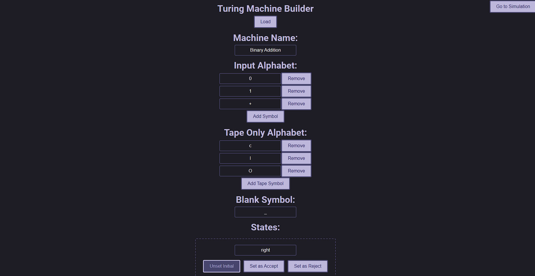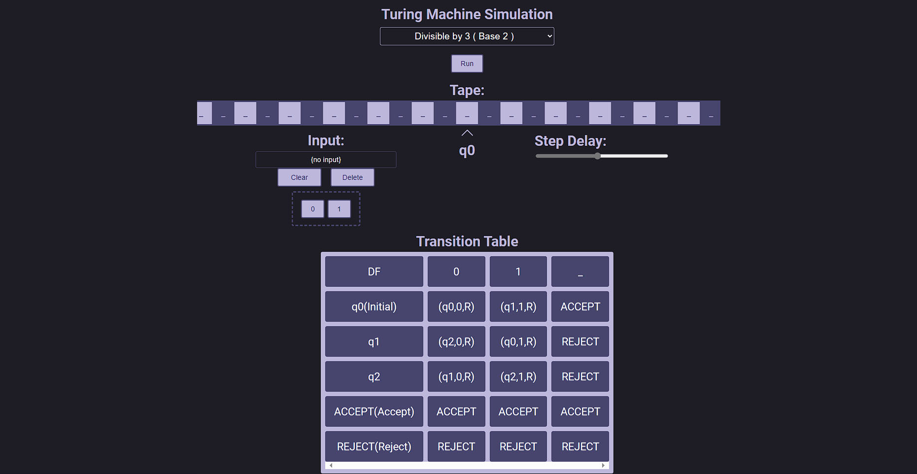 A single-tape turing machine emulator and builder, based on automata theory stuff. Built with the Angular framework.